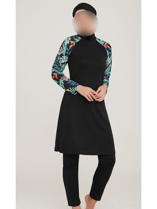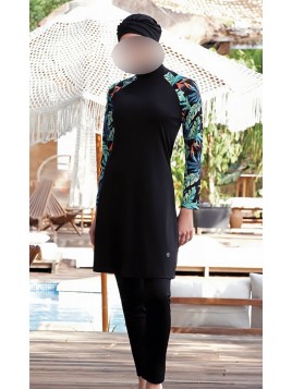 Burkini Turban Lycra noir/vert 9015
