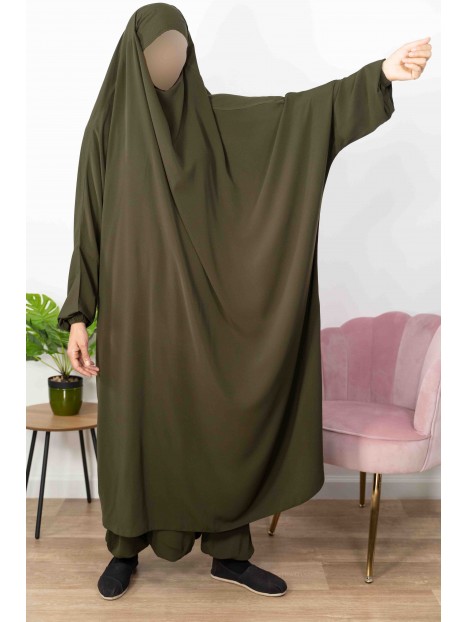 Jilbab 2 pièces sarouel - Kaki Foncé 51/52/53 - El Bassira