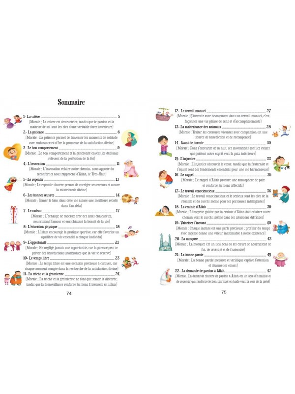 Chaque histoire, accompagnée d’un verset coranique et d’un hadith authentique, est imprégnée de pépites de sagesse, procurant aux enfants une aventure unique qui mêle divertissement et enseignements fondamentaux de la foi islamique, l’objectif principal étant de les aider à cultiver leur foi et à développer leur personnalité. En somme, l’ouvrage aspire à les accompagner dans leur développement personnel en les dotant de valeurs islamiques solides.