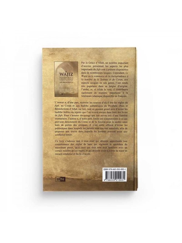 Par la grâce d'ALLAH, un nombre important d'œuvres présentant les aspects les plus importants du fiqh sont à présent disponibles dans de nombreuses langues. Cependant, Le Wajiz ou le sommaire de la jurisprudence à la lumière de la Sounna et du Coran, aux aspects uniques en son genre, l'ont rendu très populaire dans sa langue d'origine, l'arabe, et, si Allah le veut, il contribuera également de manière importante à la littérature islamique disponible en français.