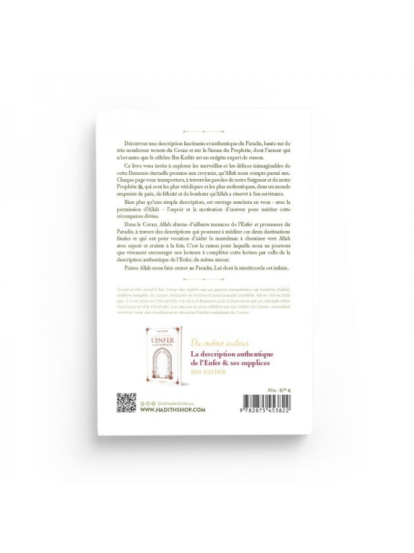Découvrez une description fascinante et authentique du Paradis, basée sur de très nombreux versets du Coran et sur la Sunna du Prophète, dont l’auteur qui n’est autre que le célèbre Ibn Kathîr est un exégète expert de renom.