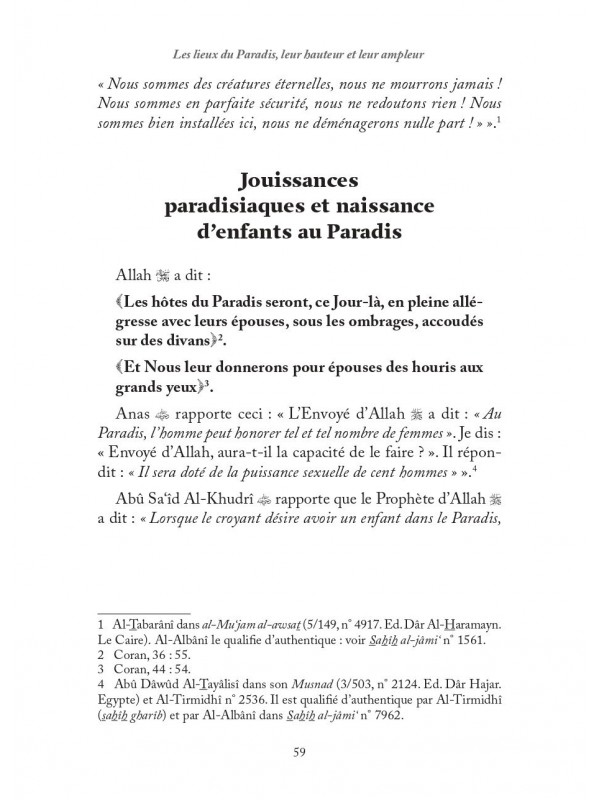 Dans le Coran, Allah alterne d’ailleurs menaces de l’Enfer et promesses du Paradis, à travers des descriptions qui poussent à méditer ces deux destinations finales et qui ont pour vocation d’aider le musulman à cheminer vers Allah avec espoir et crainte à la fois. C’est la raison pour laquelle nous ne pouvons que vivement encourager nos lecteurs à compléter cette lecture par celle de la description authentique de l’Enfer, du même auteur.