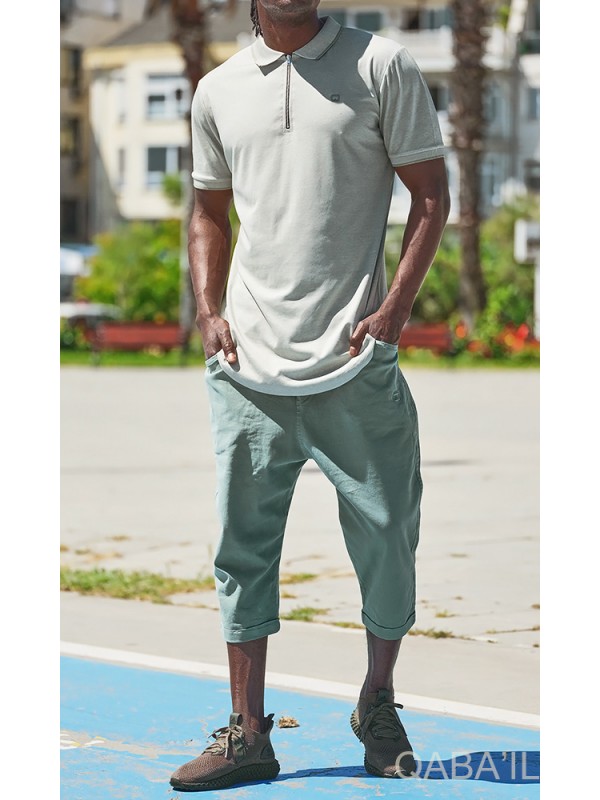 Polo manches courtes de la marque Qaba'il , fermeture zip . Matière légère.