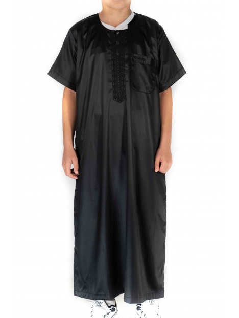 Qamis Enfant / Ado Noir satiné  manches courtes - Atlas