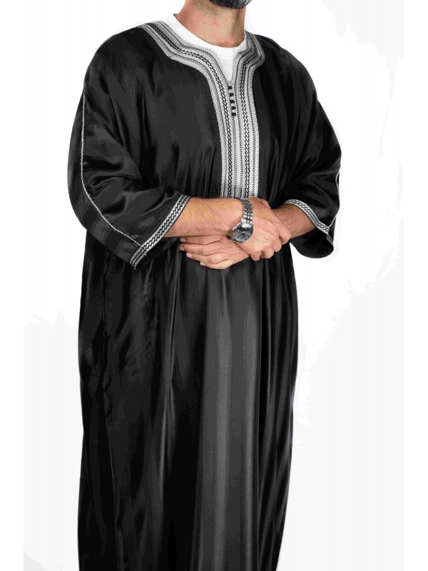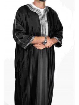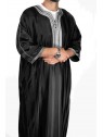 Gandoura marocaine Noir / Broderie Blanche