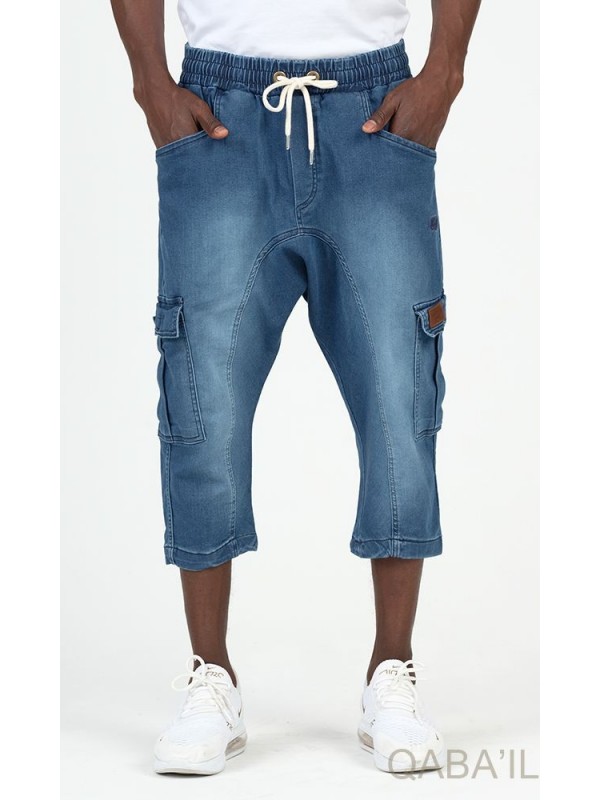 Cargo court jean stretch 9114 bleu délavé - Qabail